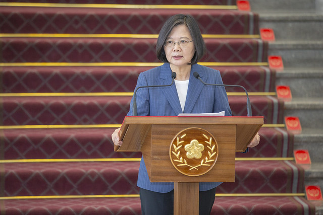 蔡英文總統今(1)日午間在總統府敞廳針對中國禁止人民到臺灣自由行,以及中國軍演等議題發表談話,並接受媒體提問。