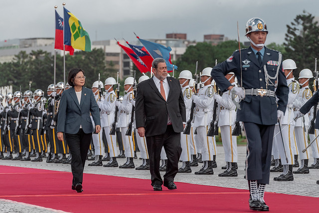 蔡英文總統今(7)日下午以隆重軍禮歡迎聖文森及格瑞那丁總理龔薩福(Ralph Gonsalves)伉儷,強調臺聖兩國是最堅實的夥伴,未來透過聖國在臺灣新大使館的運作,為兩國外交合作及長久邦誼創下新的里程碑。