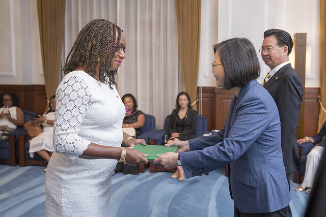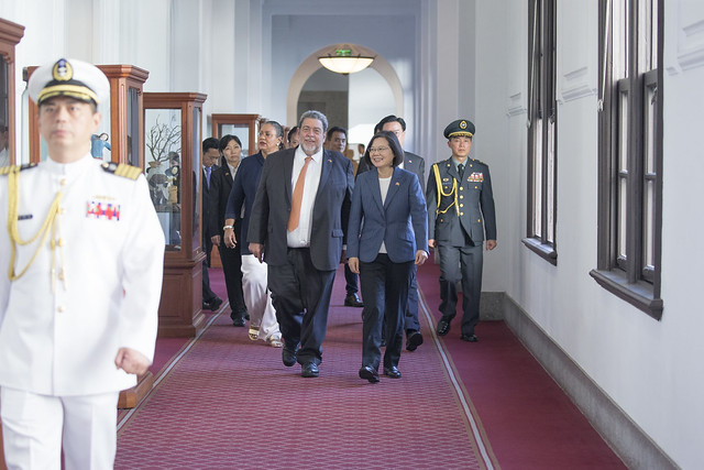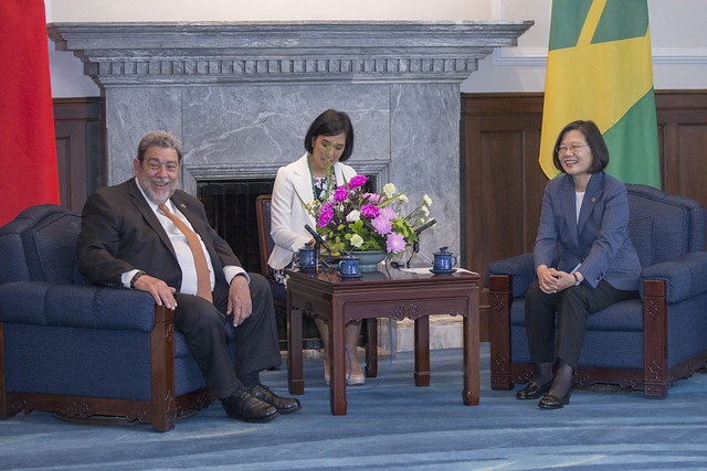 蔡英文總統今(7)日下午偕同陳建仁副總統伉儷會晤聖文森及格瑞那丁總理龔薩福(Ralph Gonsalves)伉儷暨接受駐臺特命全權大使柏安卓(Andrea Bowman)呈遞到任國書,期許聖國在臺大使館的成立,讓臺聖兩國友好邦誼再上層樓,並期盼龔薩福總理持續支持臺灣的國際參與,共同為世界做出更重要的貢獻。