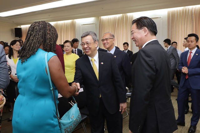 副總統致詞時表示,今天是8月8日父親節,剛好也是龔薩福(Ralph Gonsalves)總理的生日,再加上聖國在臺新設立的大使館正式揭牌,可以說是喜上加喜。尤其令人感動的是,總理伉儷特地不遠千里親自率團來臺灣主持揭牌儀式,足見總理對臺聖兩國邦誼的重視。