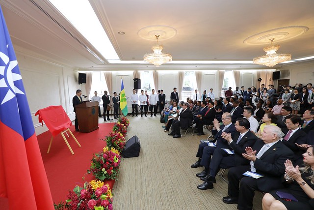 包括國家安全會議秘書長李大維、外交部長吳釗燮、我駐聖國大使何震寰、聖國新任駐臺大使柏安卓及使節團團長尼加拉瓜大使達比亞(William Manuel Tapia Alemán)等亦出席是項揭牌活動。