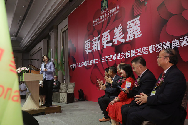 總統說,她要特別感謝都更總會長期以來對政府政策的支持,時常舉行研討會、辦理都更危老培訓,並給予民眾許多在實務上的寶貴建議。她指出,都更總會是由許多與都更相關的中小企業主、產官學研等專業人士組成的優良團體,這也代表都更這項國家的重要工作,是需要從最基礎、最貼近人民的角度,結合大家的能量,才能成就的工程。