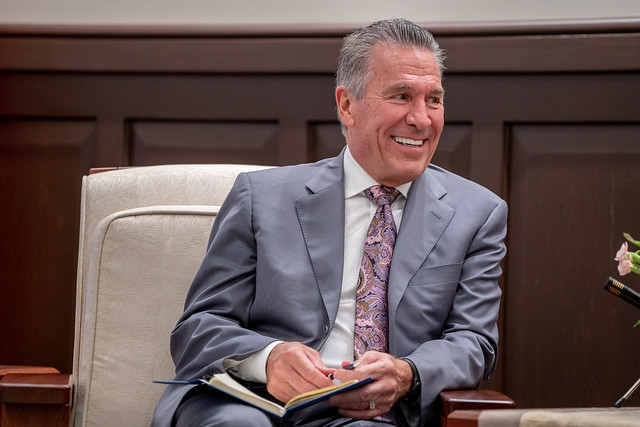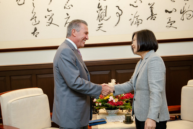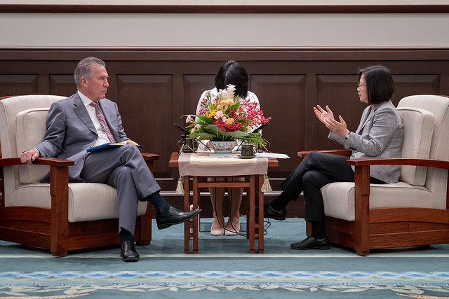最後,總統再次感謝史麥克主席跟韓儒伯會長,以及「美台商業協會」對臺灣的支持。今天她也邀請他們一起參加航太國防及無人機展,希望藉由這次來訪,史麥克主席和韓儒伯會長更加了解臺灣的產業發展現況,跟我們一起努力,持續深化臺美的經貿夥伴關係,並祝福訪問圓滿順利。