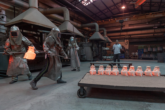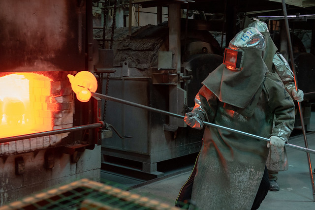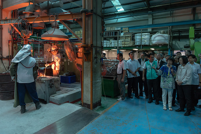 總統抵達後,首先聽取該公司總經理林允進簡報「企業歷程與未來展望」,並參訪該公司的船用螺旋槳、大古鐵器製程等生產線。