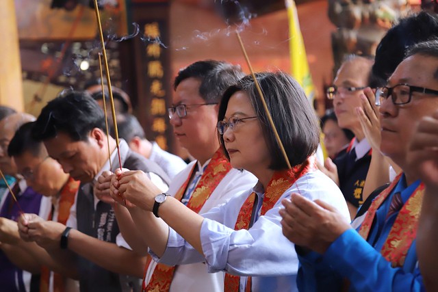 蔡英文總統今(18)日上午前往桃園出席「中壢慈惠堂瑤池金母聖誕參香祝壽」,向母娘祈求風調雨順,四時無災,也向鄉親說明執政團隊在過去3年來,為臺灣打下很好的基礎,她有決心要守護臺灣、保護民主,帶給臺灣人民更安居樂業的生活。