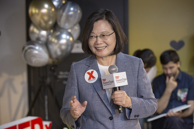 總統很高興參加TEDxWeekend Taipei的啟動會議,並表示,對她來說,TED是一種典範,也是她夢寐以求有一天會被邀請來演講的地方,她也祝福活動圓滿順利。