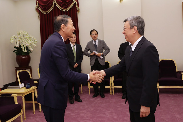 訪賓一行尚包括日本台灣交流協會台北事務所副代表星野光明等,由國立陽明大學校長郭旭崧、衛生福利部主任秘書鄭舜平及信馨股份有限公司執行長黃謙銘等陪同,前來總統府拜會副總統。