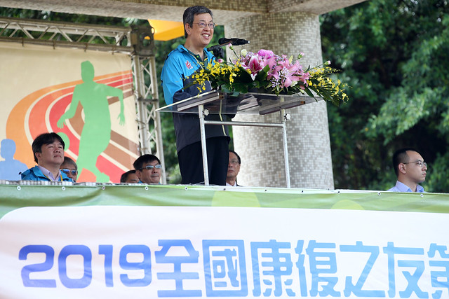 副總統致詞時表示,非常高興受邀參加一年一度的全國康復之友運動會,感謝衛生福利部長陳時中帶領衛福部團隊,以及八里療養院所有工作同仁,在過去一段時間的辛勞,也由衷感謝來自各地的康復之友,有他們的支持,讓本屆運動會更顯光彩。