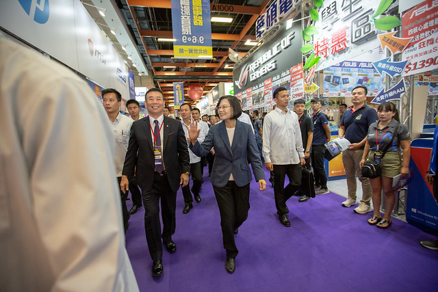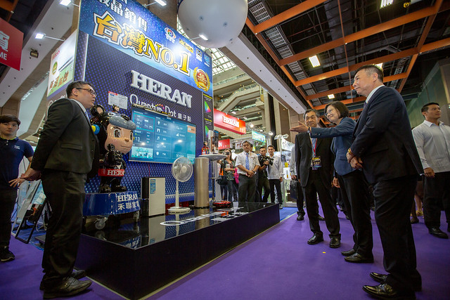 最後,總統說,政府也會和各位產業先進共同努力,讓臺灣產業有更多創新的發展以及突破。隨後,總統與現場貴賓一同舉行啟動儀式,並參觀展場攤位。