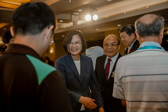 總統致詞時表示,今天非常高興跟手工具工業同業公會的好朋友們見面。她指出,今天是會員代表大會活動,也是新任理事長、理監事改選的日子,她要預祝幹部改選順利、大會活動成功圓滿。
