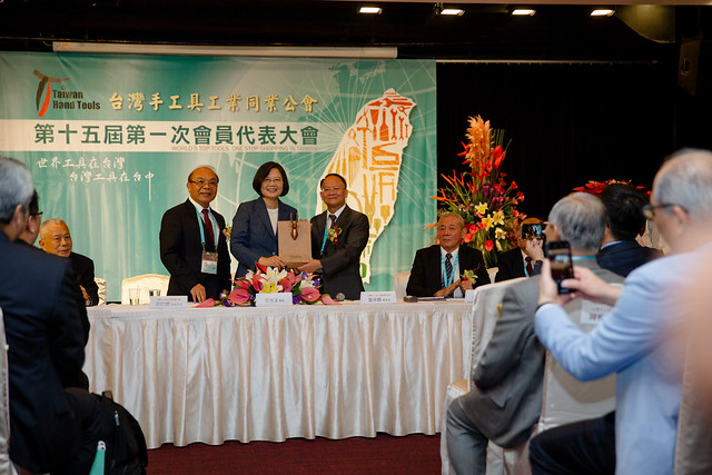 蔡英文總統今(6)日下午前往臺中出席「臺灣手工具工業同業公會第15屆第一次會員代表大會」,肯定臺灣手工具產業在面對美中貿易戰的衝擊,表現依然亮眼。她強調,政府會持續協助手工具製造生產導入各種智慧化技術,讓產業升級轉型,也會透過各種優惠措施鼓勵企業投資臺灣,讓臺灣繼續做世界第一等的「手工具王國」。