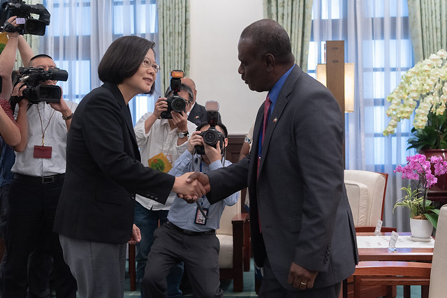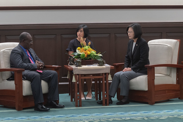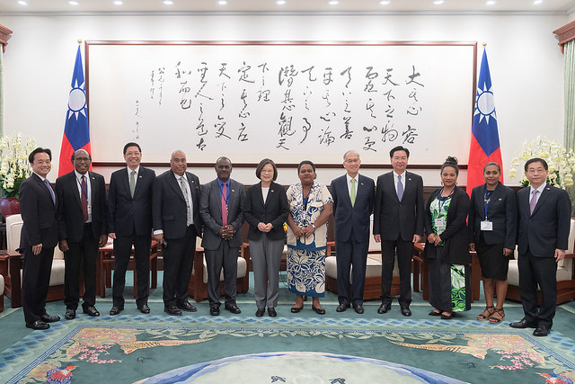 訪賓一行由外交部長吳釗燮及索羅門群島駐臺大使王哲夫(Joseph Pius Waleanisia)陪同,前來總統府晉見總統,國家安全會議秘書長李大維也在座。
