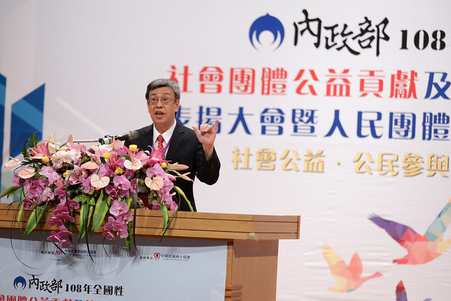 副總統致詞時首先代表總統向所有得獎團體及個人,表達最誠摯的祝賀與敬意。他說,當世界資訊流通的速度越來越快,政府和民間將會有越來越多協力合作的機會,而人民團體一直是政府推動政策很重要的支持後盾,尤其在推動社會公益上,更是不辭辛勞的重要推手。