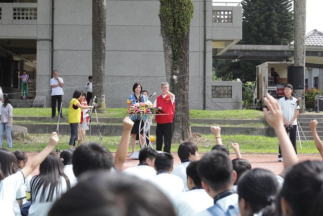 副總統致詞時表示,非常高興來到充滿熱情活力的社寮國中,剛剛地震警報一發布,全校同學及老師們立即進行就地掩蔽,確實完成「趴下、掩護、穩住」抗震保命三步驟,疏散過程「不推、不跑、不語」,迅速到達疏散指定地點,顯見由黃校長所帶領的社寮國中,防災教育已成為日常學習的一部分,透過平時不斷演練展現今天很好的成果,他請老師及同學們給自己一個熱烈的掌聲,肯定自己也是防災很重要的一份子。