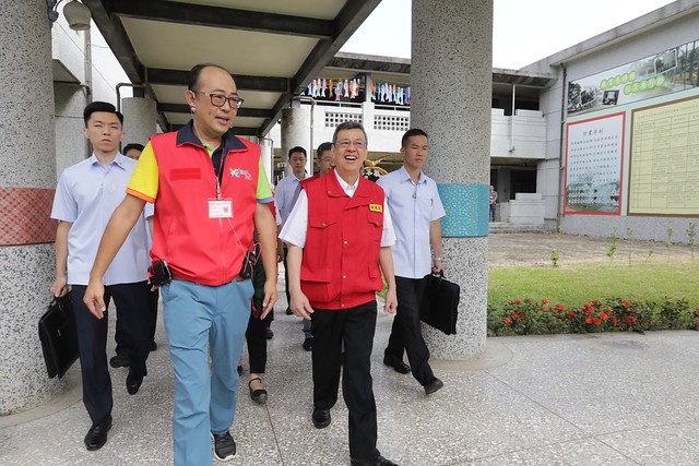 陳建仁副總統今(20)日上午前往南投縣視導「108年度國家防災日社寮國中地震避難掩護演練」,肯定同學們在防災演練時不慌不忙的沈著表現,期勉在政府與民間各個防災工作崗位努力的夥伴們精益求精,學校校長、老師持續重視防災教育,讓每個學校都成為防災校園。