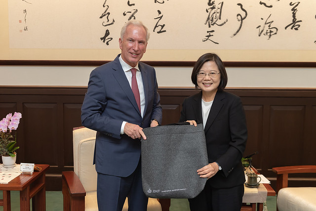 總統指出,她要謝謝EKF努力促進臺灣和丹麥之間的交流。今年6月,我外交部吳釗燮部長受邀到丹麥出席「哥本哈根民主高峰會」,感謝EKF對吳部長的接待,展現出丹麥對臺灣的重視和情誼。