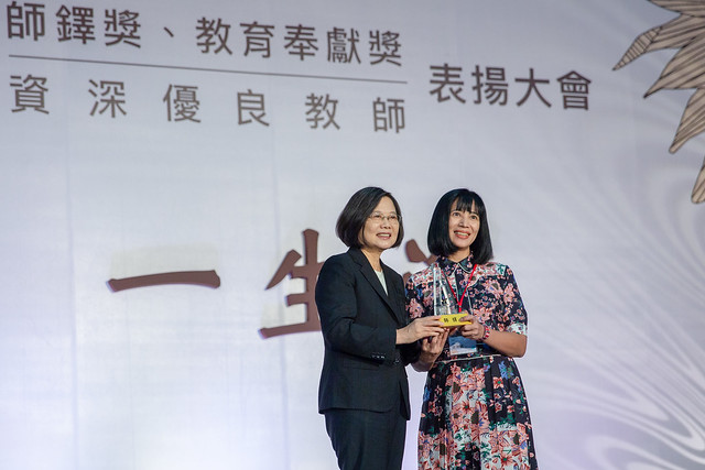 總統說,現場還有許多優秀老師,恕她無法一一提起。事實上,從她自己的求學、教書經驗中,充分感受到,有一位願意陪伴、耐心教導的老師,是多麼值得珍惜、回憶的一件事。