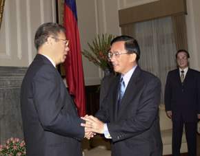 總統進一步表示,自去年五二○他宣誓就任中華民國第十任總統的那一刻起,新政府在全國人民付託與期許下,無不憚精竭慮,奉獻赤忱,以維護國家利益與人民福祉,同時推動各項政務改革,以提昇國人的生活品質,並致力於積極參與國際社會、回饋國際社會,期與世界先進國家並駕齊驅;在國家經濟建設方面,力求經濟自由化與國際化,厚植國家基業;並穩健推動兩岸良性互動,期使兩岸政治都朝向自由化、民主化及經濟互惠互利的雙贏局面。