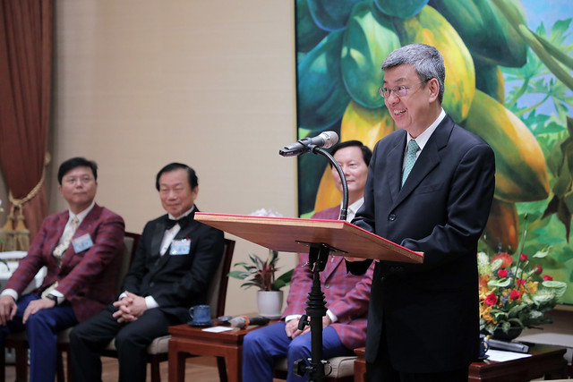 副總統首先代表總統歡迎代表團成員來到總統府,並表示,欣聞本屆世界洋服聯盟大會比賽,我參賽國手大放異彩,包辦洋服聯盟最大殊榮之「金針金線」男裝、女裝雙料金牌及團體總冠軍,並囊括金手指比賽最佳縫製獎、大會最佳創作金首獎等獎項。