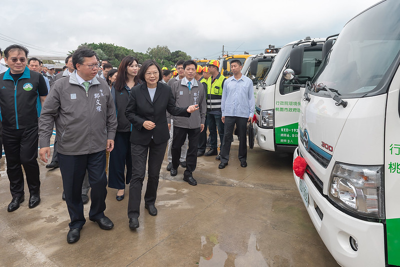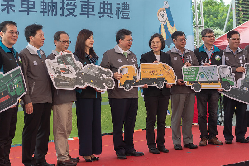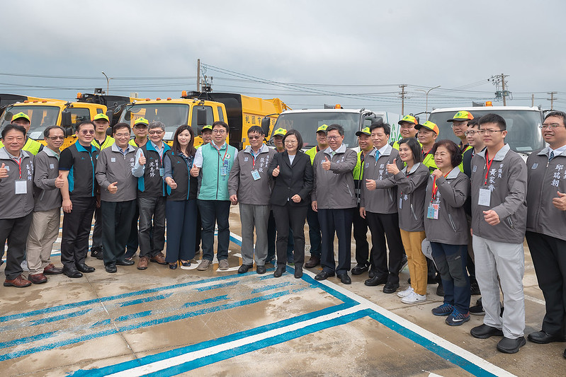 蔡英文總統今(28)日上午至桃園出席「低碳環保車輛授車典禮」時,肯定全國清潔隊員的努力及付出,並表示,政府將透過設計新制服、改換新機具、引進盥洗設備、改善休息空間等「好行、好穿、好洗、好住」四大任務,照顧清潔隊員。