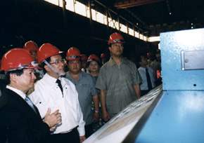 總統也指出,行政院從八十八年年底起,即依據「提昇傳統產業競爭力方案」,來協助我們傳統產業解決現有的難題,並定期作成效檢討。而他在六月初、出訪回國時,在六月五日下午即刻與金融機構負責人會商,呼籲共體時艱,配合政府措施,負起社會責任,積極發揮金融中介功能,協助企業取得所需融資,以度過當前的困境。今天來到遠東機械公司參觀,也是希望透過實地的觀察,以求更貼近瞭解我們傳統產業,未來政府仍將持續強化照顧傳統產業的各項措施。