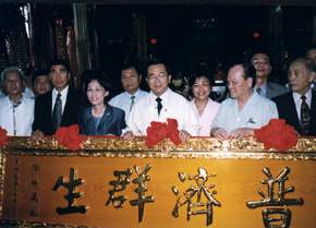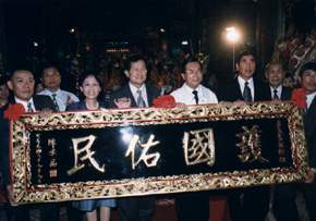 稍早,總統也分別到嘉義市城隍廟和九華山地藏庵參拜祈福,並分別贈獻「護國佑民」、「普濟群生」匾額。