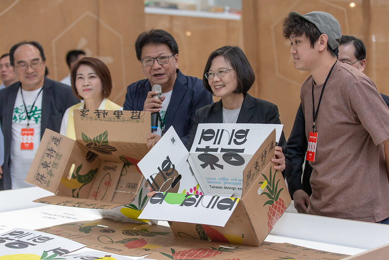 總統致詞時表示,今天來參加「2019台灣設計展」開幕典禮,身為屏東人,她覺得非常親切,也非常驕傲。屏東從潘孟安縣長上任以來,真的變成很有設計感的一個地方。上個月,屏東縣政府出了一套旅遊手冊,人見人愛,精美到全國關注,各界都搶著要。