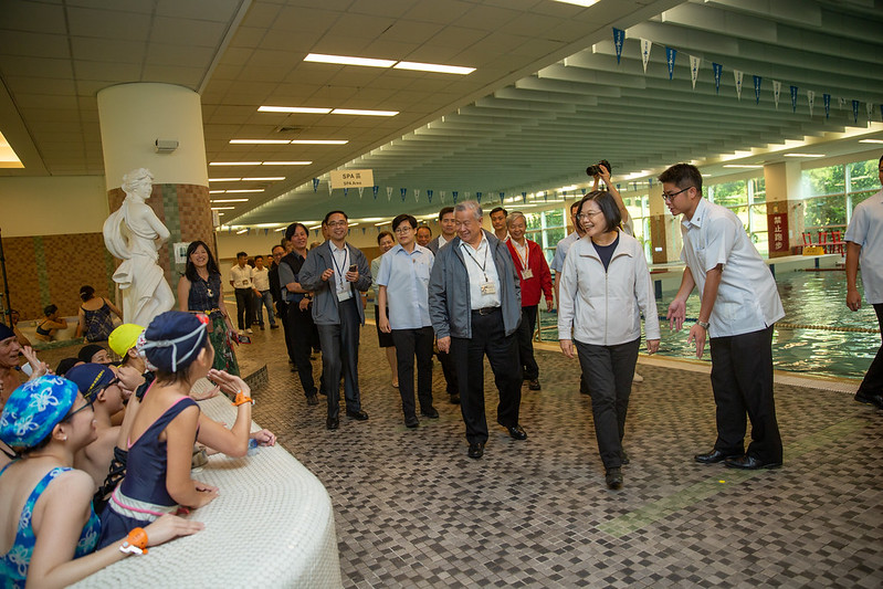 隨後,總統也參觀旺宏的員工休憩區,包括游泳池、親子遊樂區及綜合體育館等,肯定企業提供員工完整的福利,讓員工在工作之餘,也能保持健全身心。