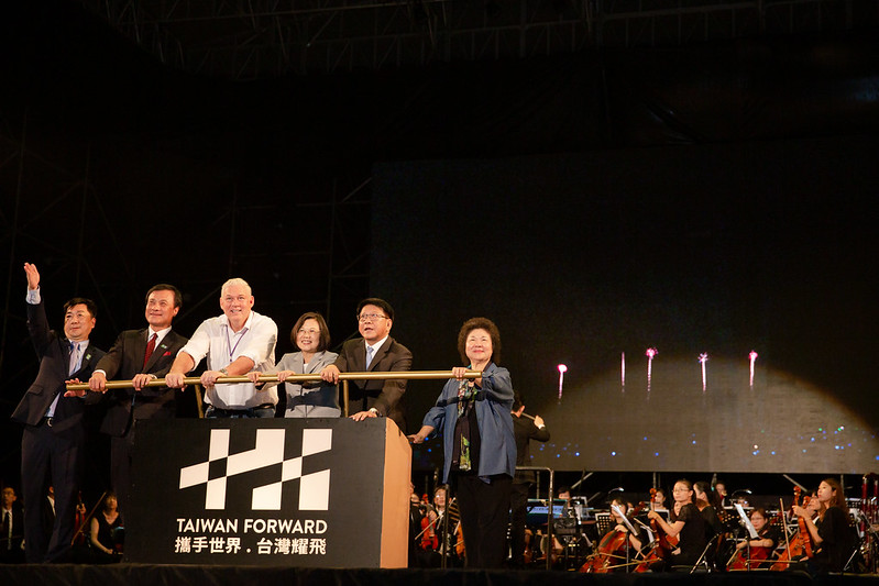 最後,總統祝褔所有到場的好朋友,都能夠盡情享受今晚精采的焰火,「讓我們一起攜手世界、臺灣耀飛」。