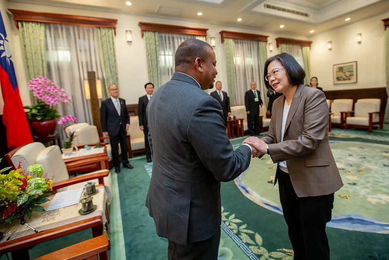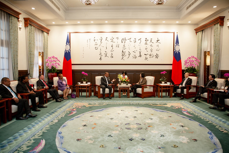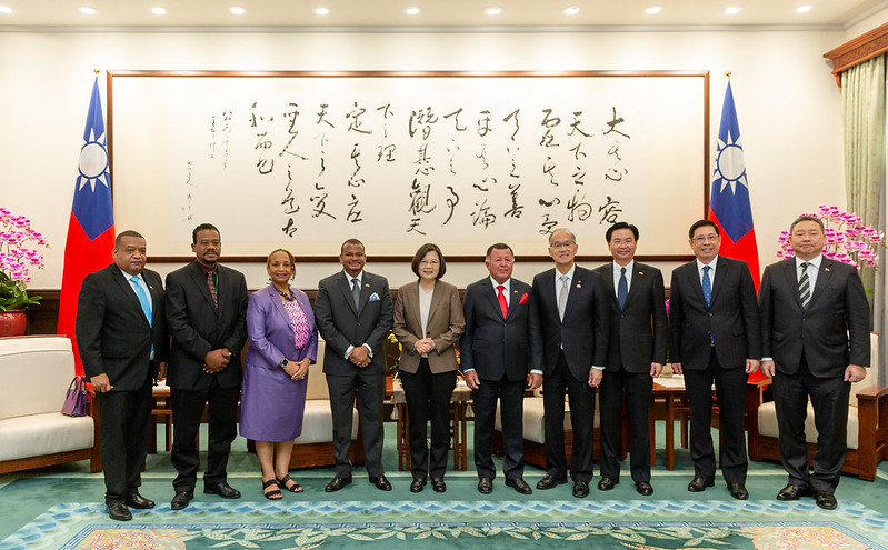 訪賓一行由外交部長吳釗燮陪同,前來總統府晉見總統,國家安全會議秘書長李大維也在座。
