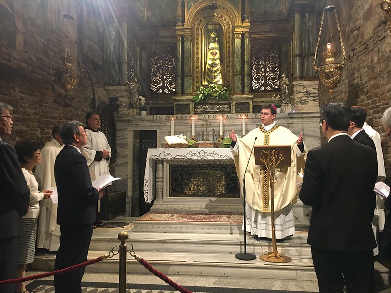 副總統伉儷一行抵達洛雷托教區後,首先在達爾欽總主教、外交部次長謝武樵及駐教廷大使李世明等人陪同下,參觀教區博物館及聖家大殿;之後,副總統伉儷進入聖母之家,進行為臺灣祈福的彌撒,並與總主教唸三鐘經;彌撒結束後,副總統也與總主教共進午餐,並歡迎總主教再度來臺灣訪問。
