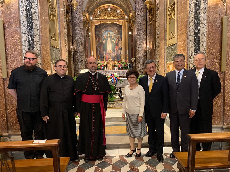 下午,副總統伉儷一行轉赴馬切拉塔教區參訪,先在馬可尼主教等人陪同下,至仁慈聖母殿祈禱,也參觀利瑪竇研究中心。