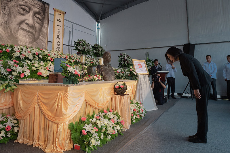 總統抵達後,首先在司儀引領下於史明歐吉桑遺像前行三鞠躬禮,隨後頒贈褒揚令,由史明義女黃敏紅女士及義子李政忠先生代表接受。