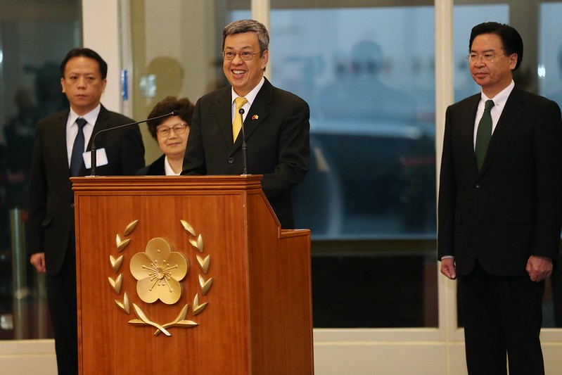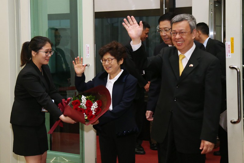 包括外交部長吳釗燮、總統府副秘書長施克和、外交使節團團長尼加拉瓜共和國大使達比亞(William Manuel Tapia Alemán)、教廷駐臺大使館臨時代辦佳安道(Monsignor Arnaldo Catalan)、秘書薛維義等均到場接機。
