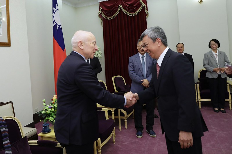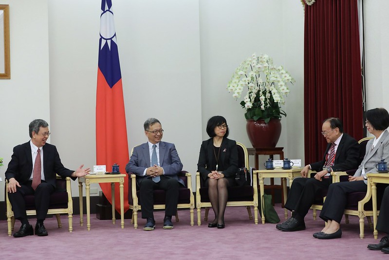 訪賓一行包括英國倫敦衛生學及熱帶醫學院教授米歇爾•科爾曼(Michel P. Coleman)等,由衛生福利部次長薛瑞元、國民健康署副署長賈淑麗陪同,前來總統府拜會副總統。