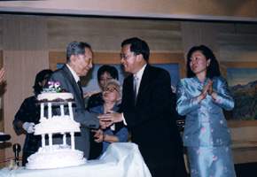 陳慧坤教授在台中縣立文化中心舉辦的「大器九五-蒼松長春回顧展」,今天開幕又剛好是他九十五歲生日,讓這項展覽的意義更顯深遠,在此謹祝陳教授身體健康,長壽百歲。