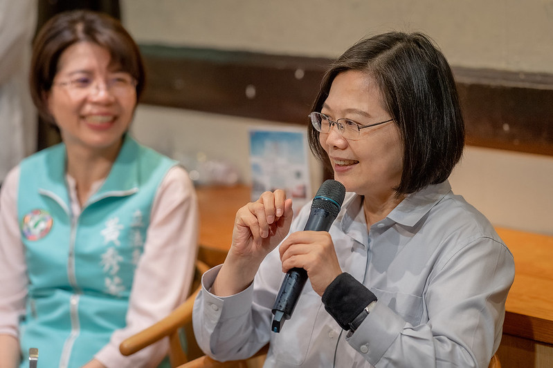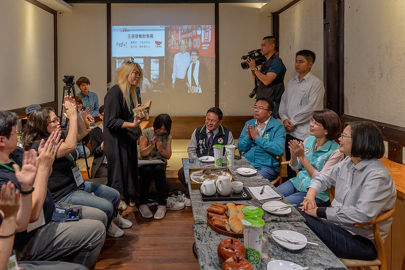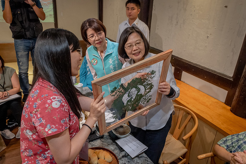 總統抵達後,首先聽取青年針對同婚、文創、文化藝術新南向產業發展、青年創業貸款等議題之想法及建議,並親切為手工琴簽名留念,並品嚐道地豆花等小吃。