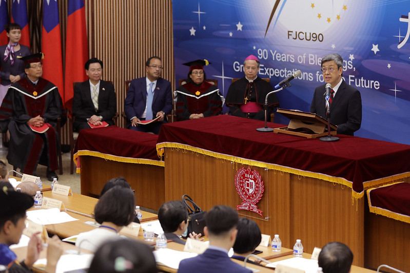 副總統說,輔仁大學是我國歷史最悠久的天主教大學,追求真、善、美、聖及全人教育的師生共同體,以基督博愛精神,致力獻身於學術研究與弘揚真理,促使社會均衡發展及增進人類福祉,輔仁大學肩負天主教使命,與一般大學很不一樣,可謂我國私立大學的典範。他曾經擔任輔仁大學的董事,也多次代表政府訪問教廷及覲見教宗方濟各,因此對輔仁大學更懷有一份特殊的情感。