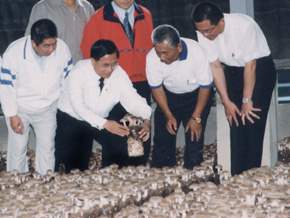 另外在稍早時,總統也到南投縣魚池鄉東光村,關心重建區香菇產業的發展及聽取農委會中部辦公室黃武林主任所做的簡報,並參觀香菇栽培區和廢棄包處理作業廠。
