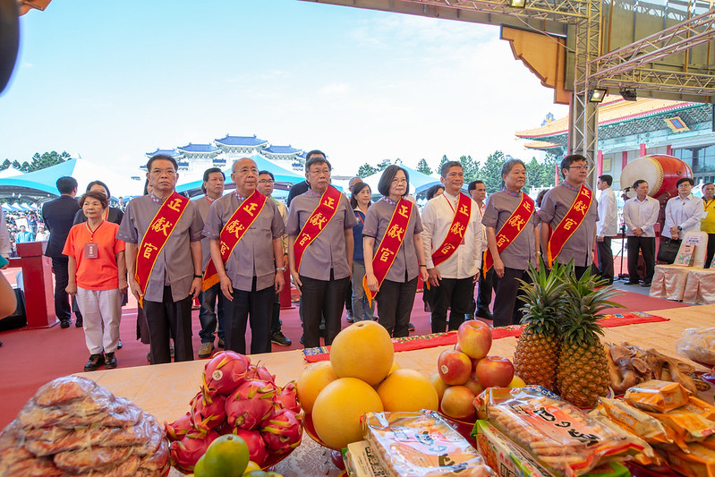 總統也提到,今天各位挑擔到會場,準備了豐盛的物品,來敬奉義民爺及忠勇公,她也祈求義民爺及忠勇公保佑國家風調雨順,國泰民安,並祝福活動成功。