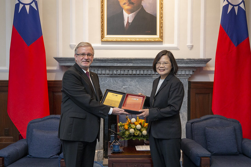 總統特別感謝凱勒主席領銜德國、法國及英國國會友臺小組主席,串聯成立跨國議會平臺「福爾摩沙俱樂部」,就在這個月的16日,剛在歐洲議會舉行了成立酒會;她也感謝凱勒主席代表俱樂部成員致贈共同連署的紀念牌,象徵我們長久的友誼。對於歐洲議會以及德、法、英三國國會友人的堅定支持,她代表臺灣人民表達誠摯的感謝。