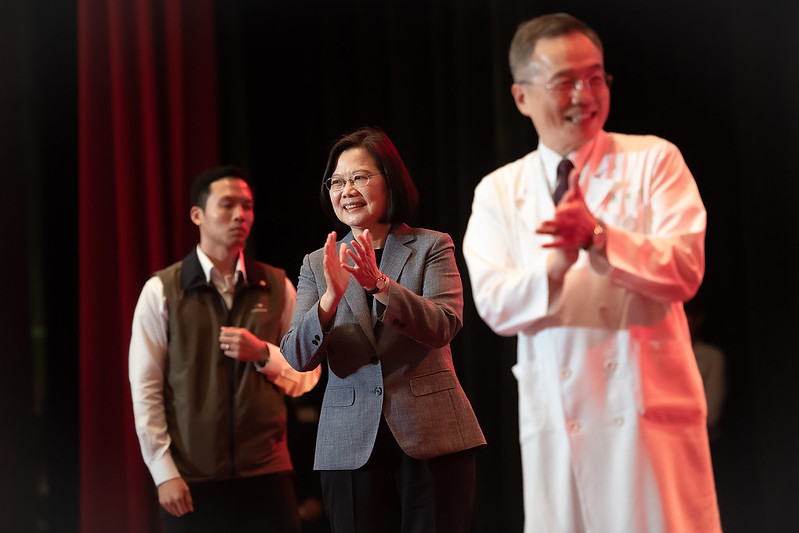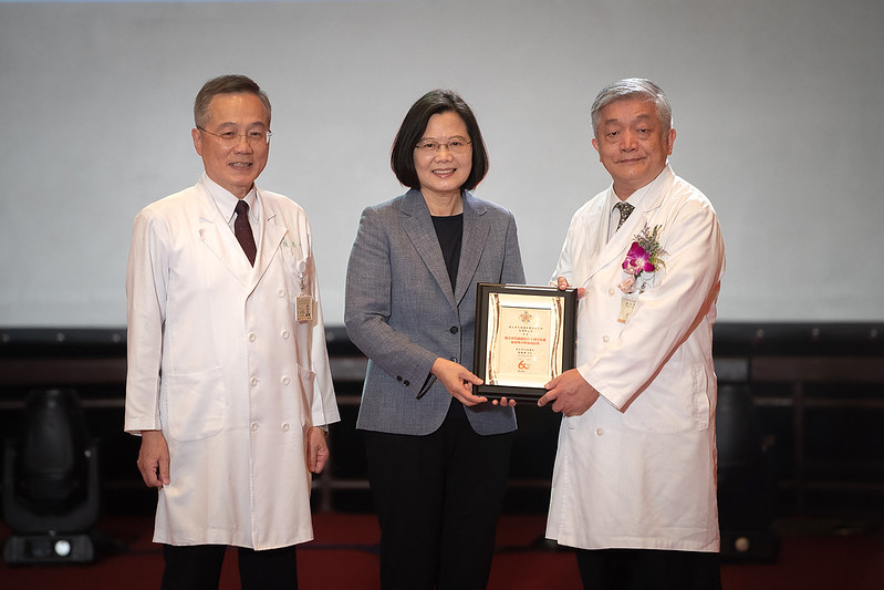 總統說,臺北榮總不但是全民就醫首選醫院之一,從921震災、八仙塵爆、到蘇澳斷橋等重大事故,都能看到北榮醫療人員搶救生命的身影。同時,許多研發成果,更是榮獲國內外許多獎項,也持續跟美、日、韓、歐及新南向國家等建立合作關係,成為彰顯臺灣人道關懷的外交尖兵。