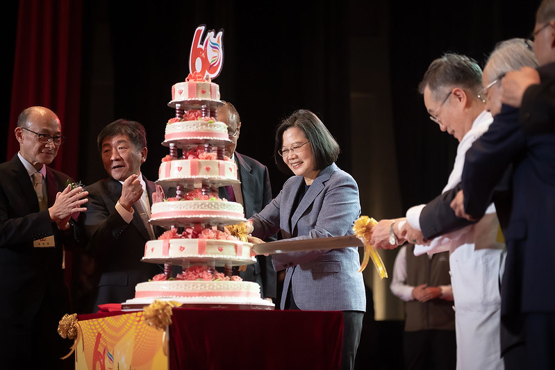 總統說,非常開心今天能來臺北榮總60週年的院慶,一同見證北榮成立60週年的喜悅與榮耀。首先她要祝福北榮一甲子生日快樂,同時向全體同仁表達最真誠的祝福與謝意。總統也特別藉此機會感謝榮總照顧她個人的健康。