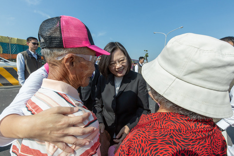 總統致詞時表示,海尾寮橋改建是地方上的大事,今天很高興跟大家一起見證竣工啟用。臺南市在黃偉哲市長的帶領下,很多公共建設不斷在完成,像是我們安南區這裡,大家很期待的台江文化中心,也在今年4月開幕了。