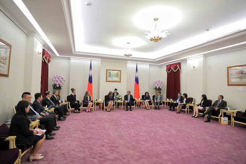 訪賓一行包括「世界健康識能學會」理事長克莉絲汀‧索倫森(Kristine Sørensen)、秘書長施碧娜‧庫爾茨‧羅西 (Sabrina Kurtz-Rossi) 、義守大學校長陳振遠及義大醫院院長杜元坤等,由衛生福利部次長何啟功陪同,前來總統府拜會副總統。