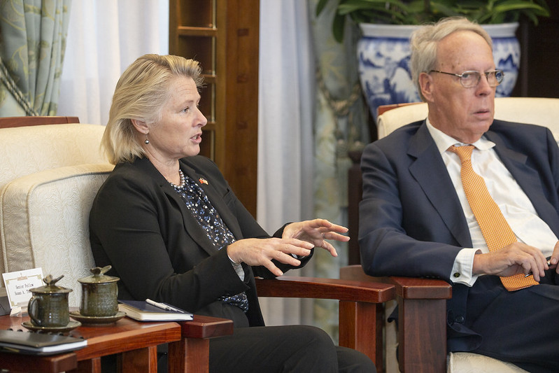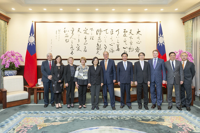 訪團一行尚包括耶魯大學法學院蔡中曾中國中心資深研究員董雲裳(Susan Thornton)、美國韓國經濟研究所副所長托克拉(Mark Tokola)、布魯金斯研究院外交政策研究員何瑞恩(Ryan Hass)及美國外交政策全國委員會亞太安全論壇計畫副主任丹尼爾斯(Rorry Grace Daniels),由外交部長吳釗燮陪同,前來總統府晉見總統,國家安全會議副秘書長蔡明彥也在座。