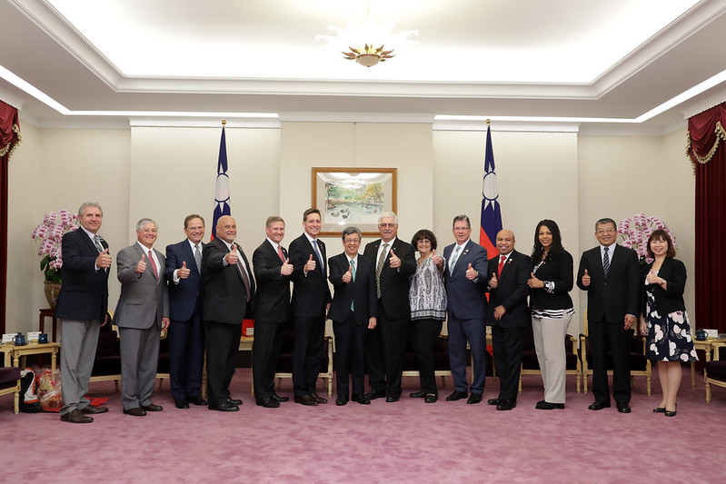 副總統特別感謝訪團成員所代表的4州州議會對臺灣的支持,他提到,臺灣與4州簽署駕照互換協定,4州也分別通過紀念《台灣關係法》40週年的友我決議案,讚揚雙方密切的經貿、文化及教育等方面合作關係,支持臺灣參與國際組織及臺美簽署雙邊貿易協定等。