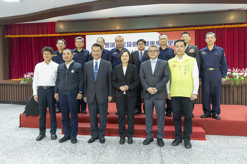總統說,她常有機會跟警消同仁坐下來談一談,更多的機會,她碰到的都是父母;他們對年輕警消同仁在執勤時的安全及生活,都表達了很多的意見跟關切。政府當然要替這些父母來照顧警消同仁,同時我們也要確保警消同仁執勤的安全。
