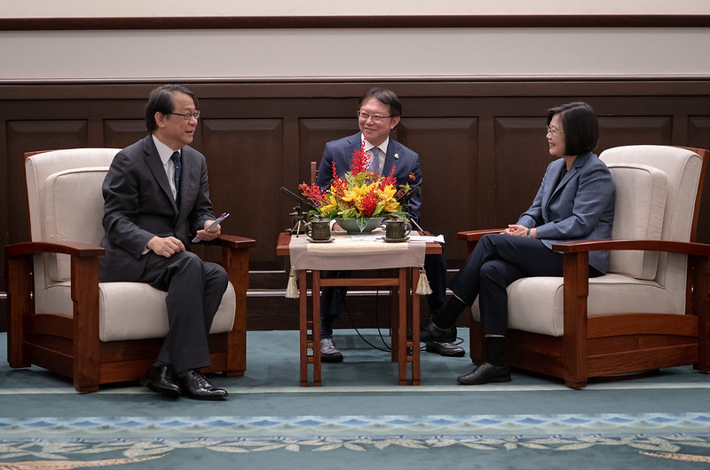 在經貿方面,總統指出,臺日互為第3、4大貿易夥伴,在全球經濟不景氣的情勢下,臺日洽談「跨太平洋夥伴全面進步協定」(CPTPP)正是時機,對日本平衡及拓展海外市場也有幫助,她期盼雙方合作能朝此一方向邁進。
