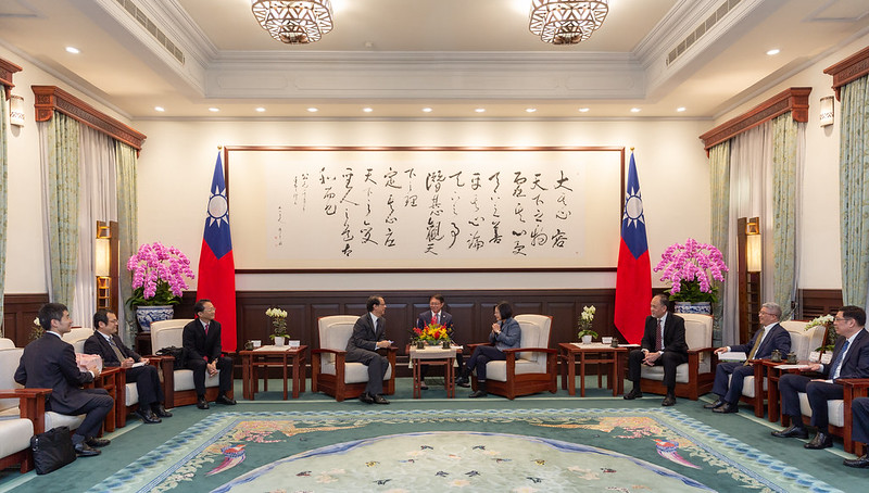 訪賓一行由外交部次長徐斯儉陪同,前來總統府晉見總統,國家安全會議諮詢委員林成蔚也在座。